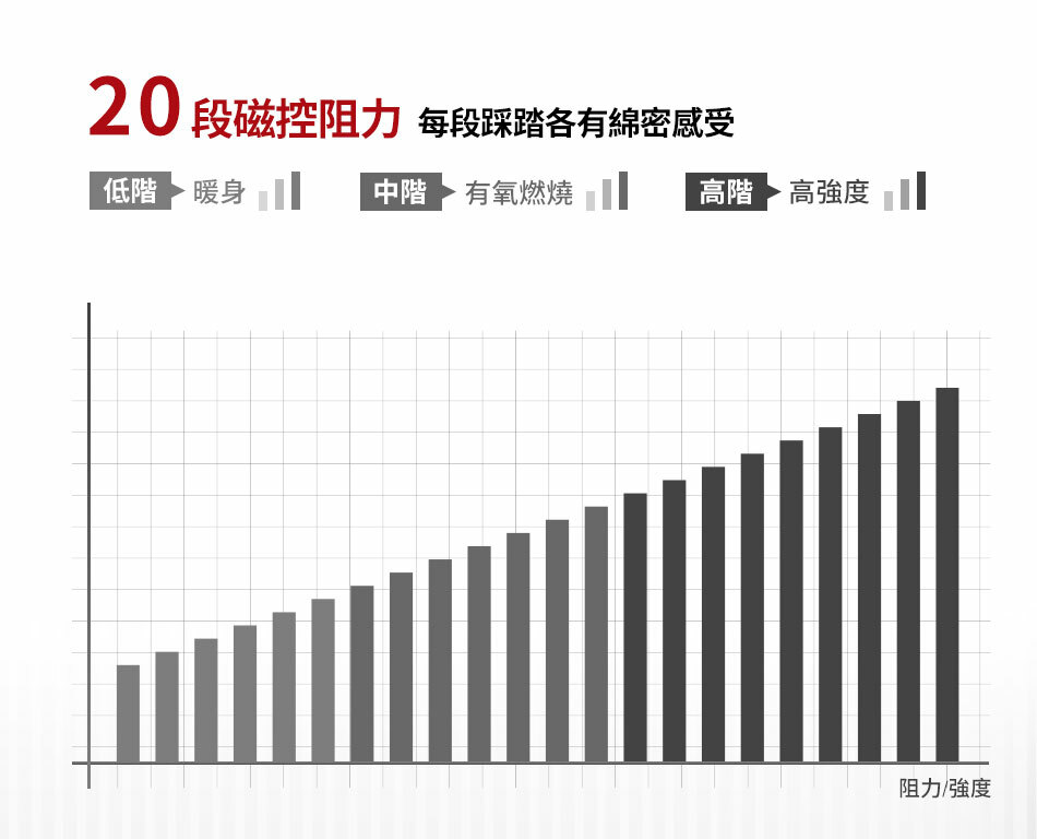 ● 20段磁控阻力變化,達到最佳的訓練效果