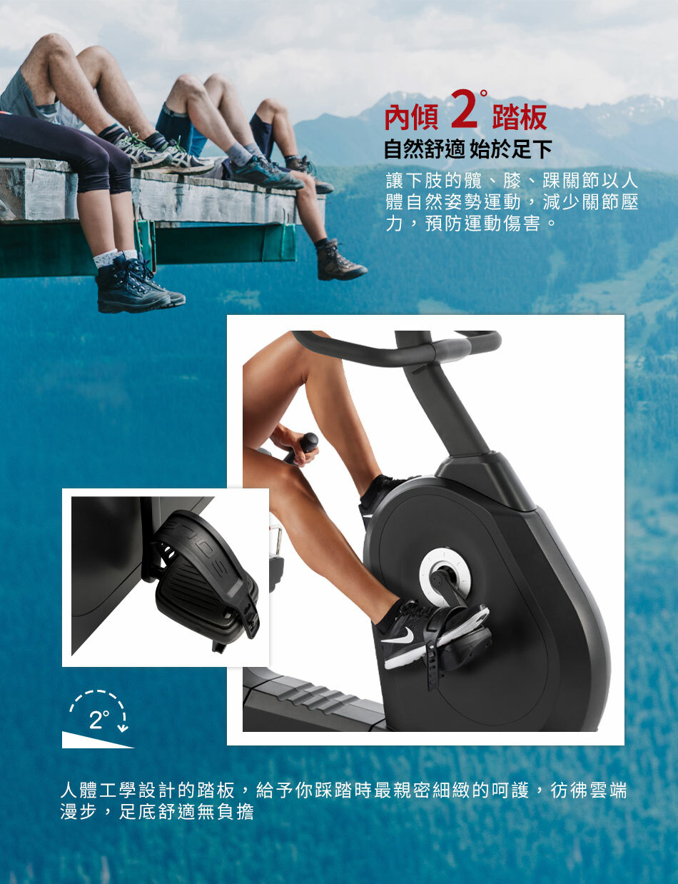 ● 踏板內傾2°設計,以符合人體工學的姿勢減少運動傷害