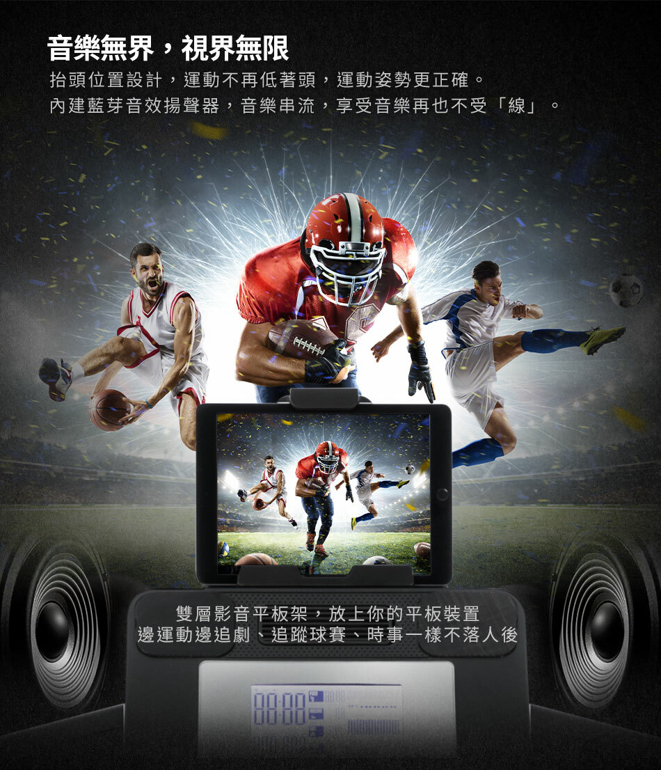 ● 平板支架讓您可以在鍛鍊期間享受更多的娛樂