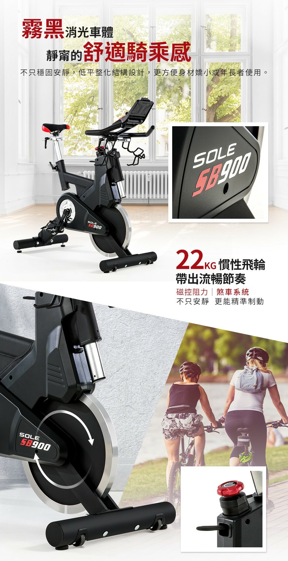 ● 採用22kg 飛輪重量,有助提升運動強度