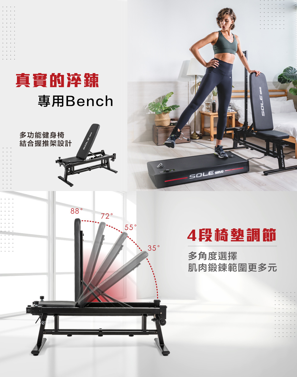 ● Bench可調節靠背位置,滿足多樣的健身需求