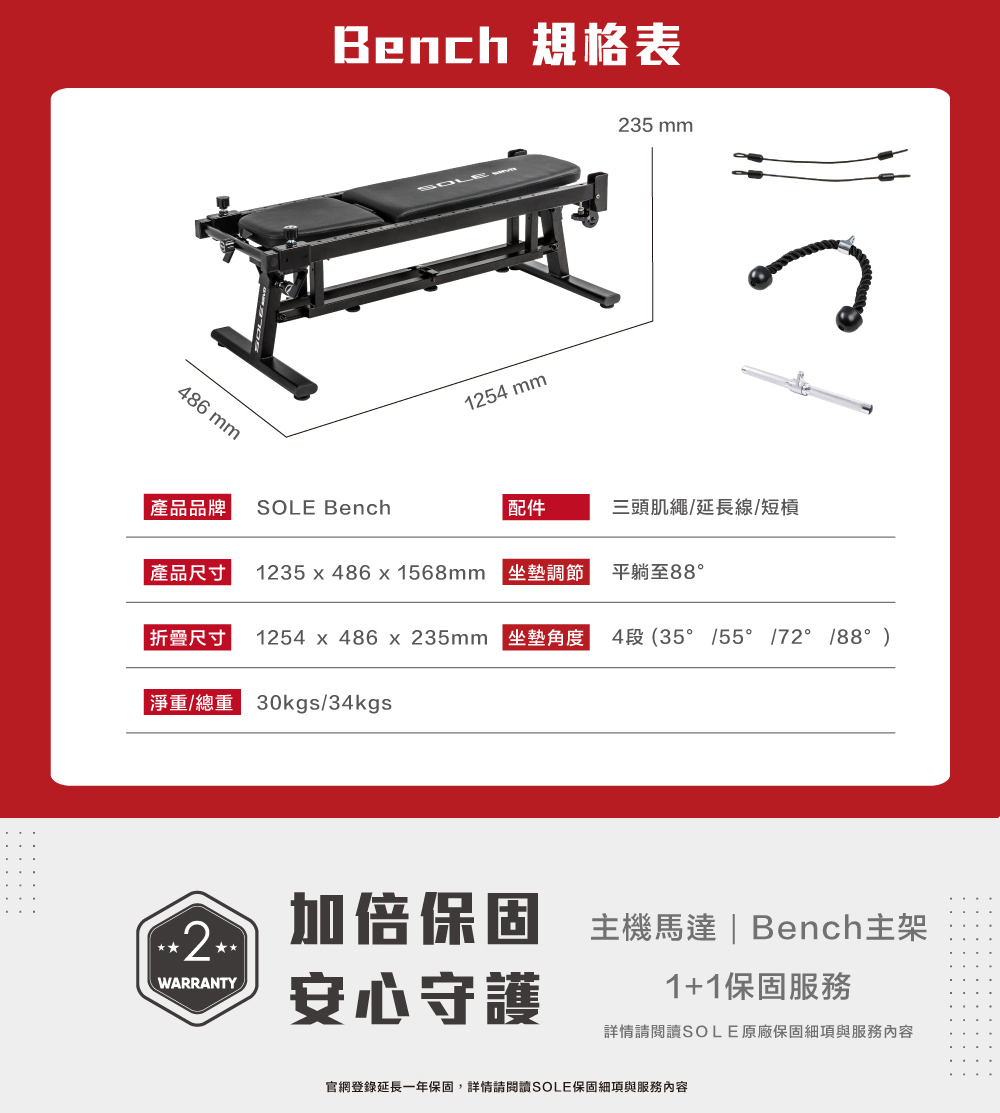 ● Bench舒適椅墊,確保訓練過程享有良好的支撐
